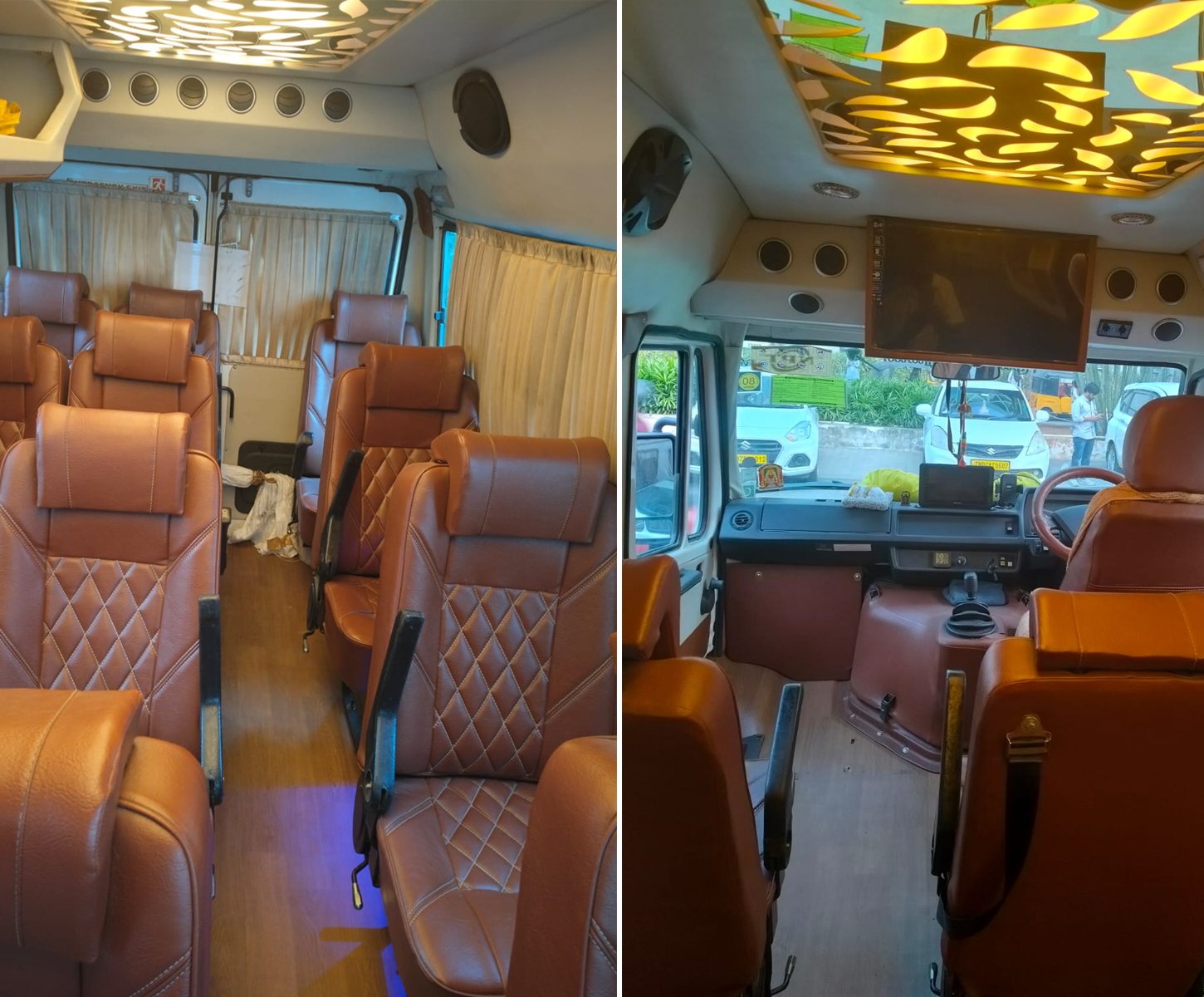 Sri SK Travels provides safe and comfortable trips in a 13-seater Tempo Traveller.